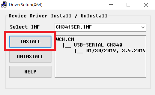 - If your computer is unable to detect the USB connection and does not show the CH340 connection in your device manager please install the attached CH341 Drivers