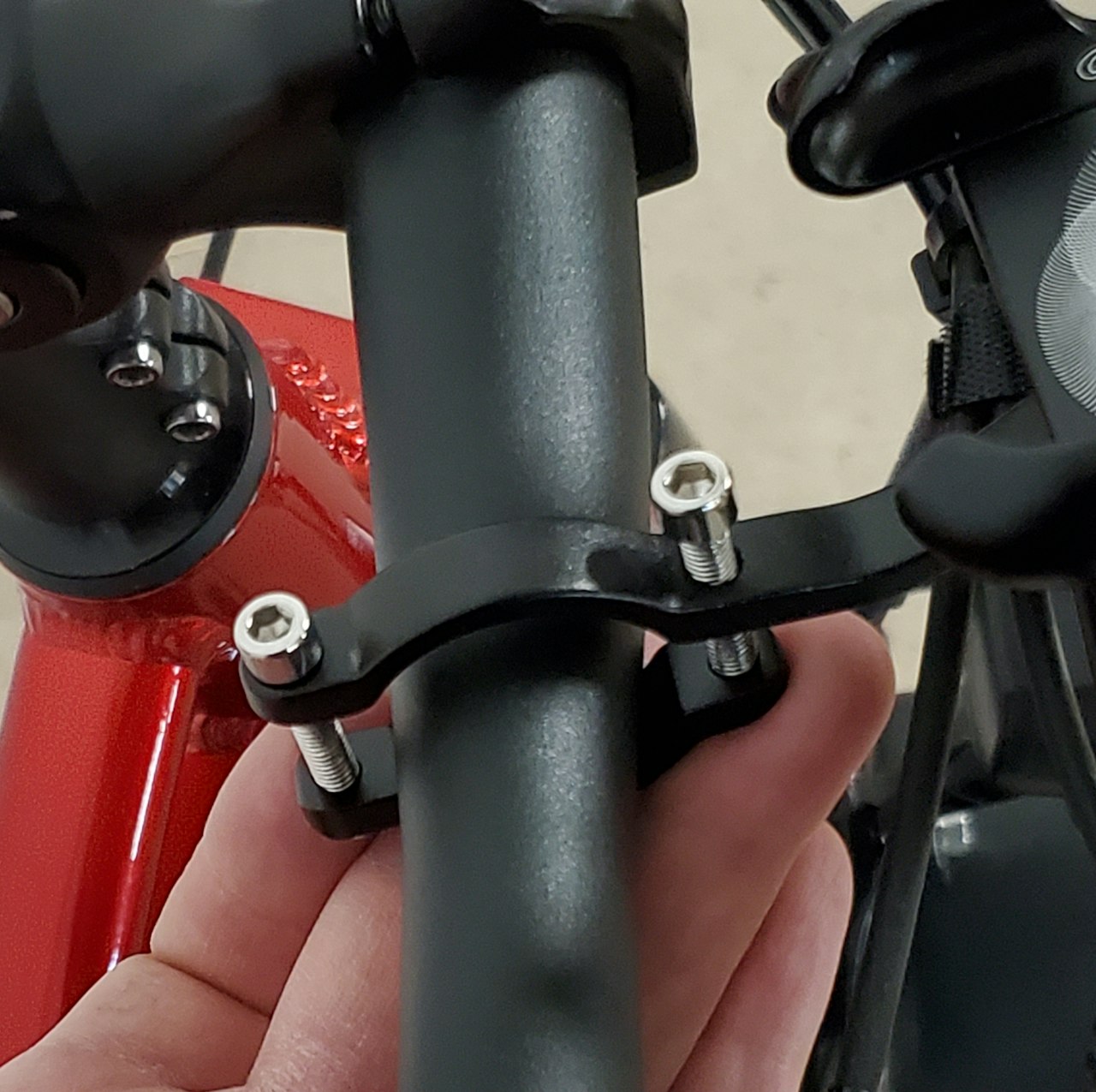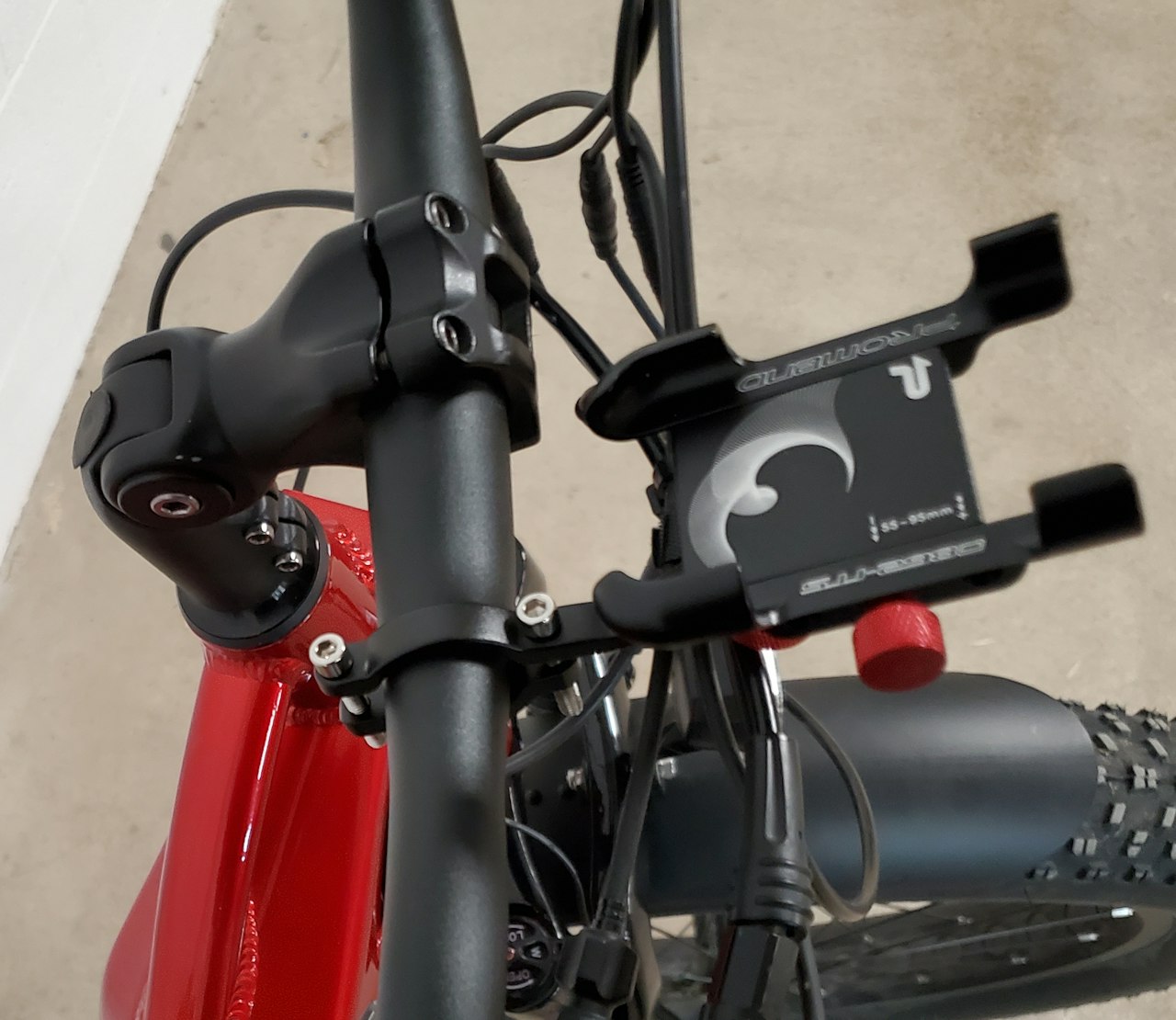 - Tighten the two bolts gradually moving between each bolt back and forth until the Cell Phone Mount is adequately secured to the handlebars.