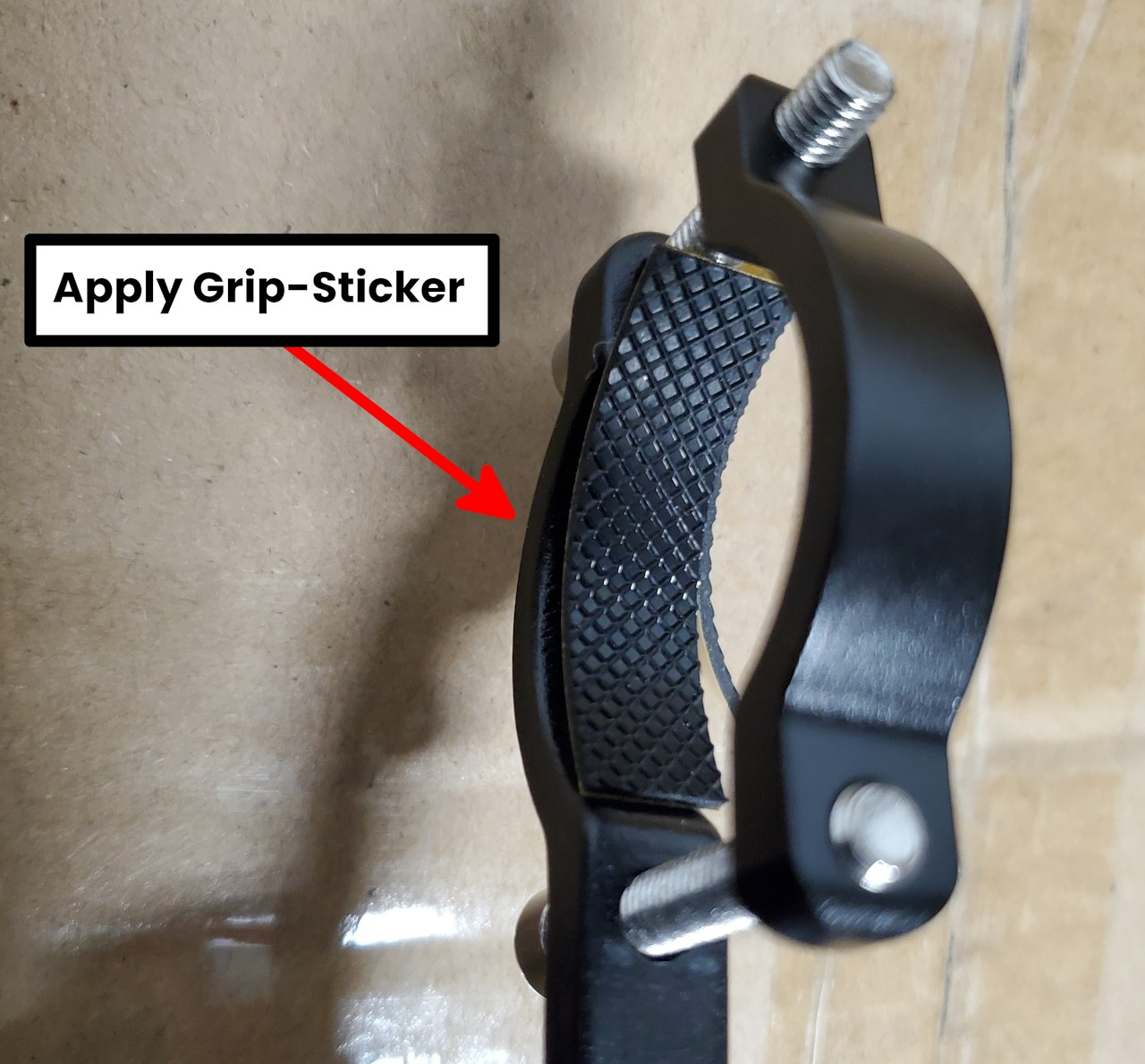 - Apply the long and narrow Grip-Stickers to the inner face of the circular C - shaped clamps that secure the cell phone mount to the handlebars.
