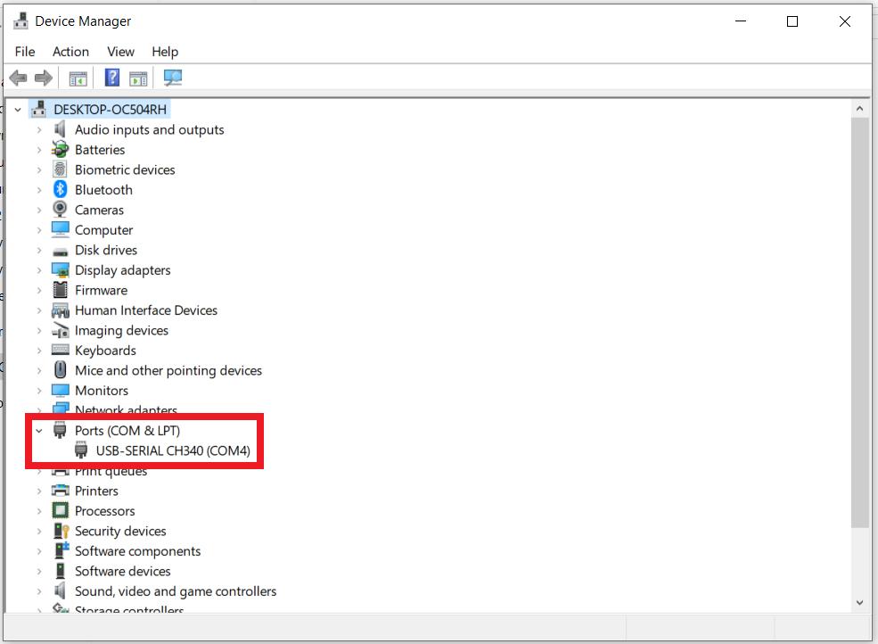 - If the Device manager does not show the USB-Serial Port download and unzip the CH341SER.zip attachment and double-click the SETUP.exe file in that folder. If that doesn't work try plugging the cable into another USB Port.
