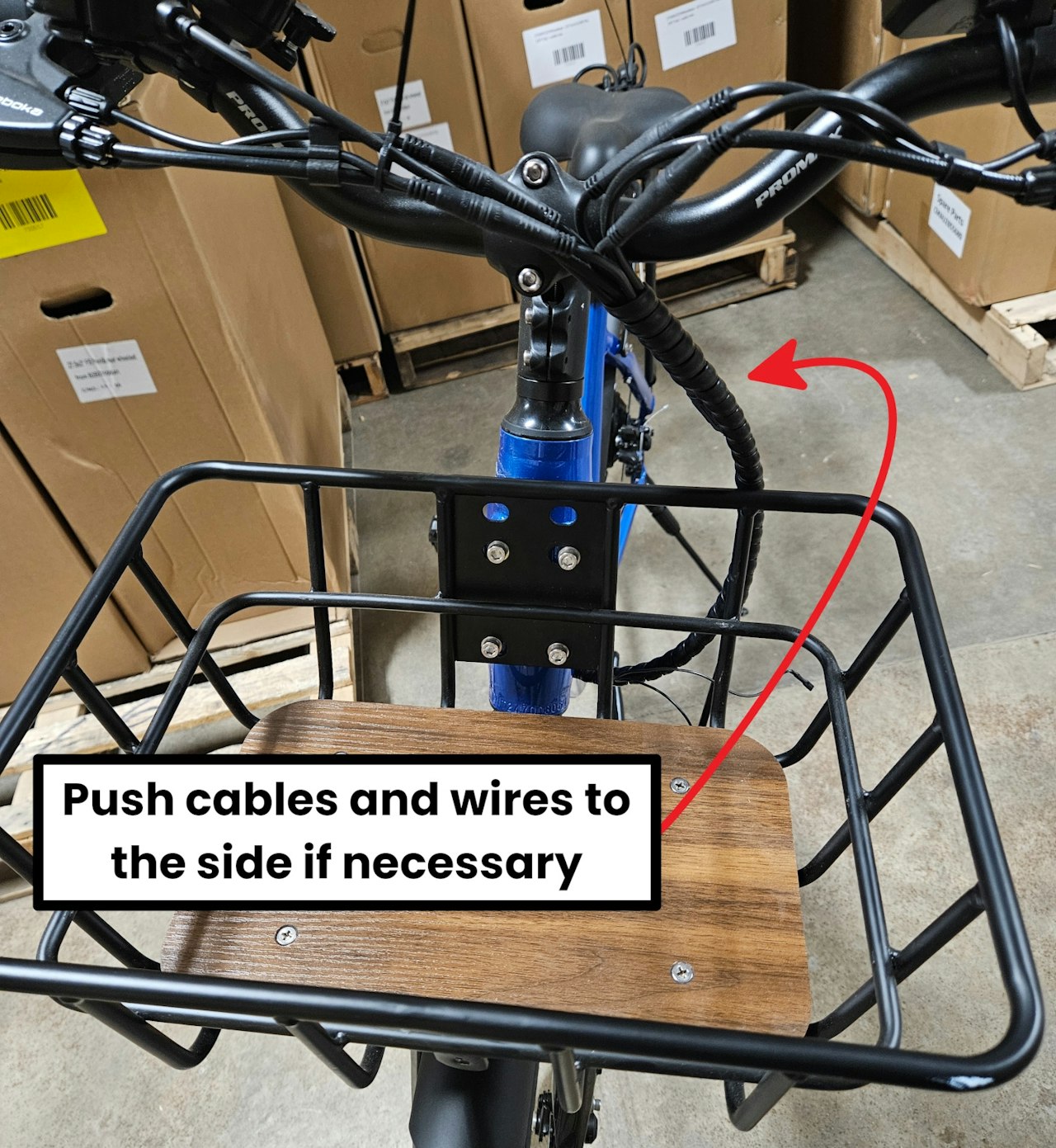 You might need to push some of the wires and cables to the side while mounting or after mounting the basket!