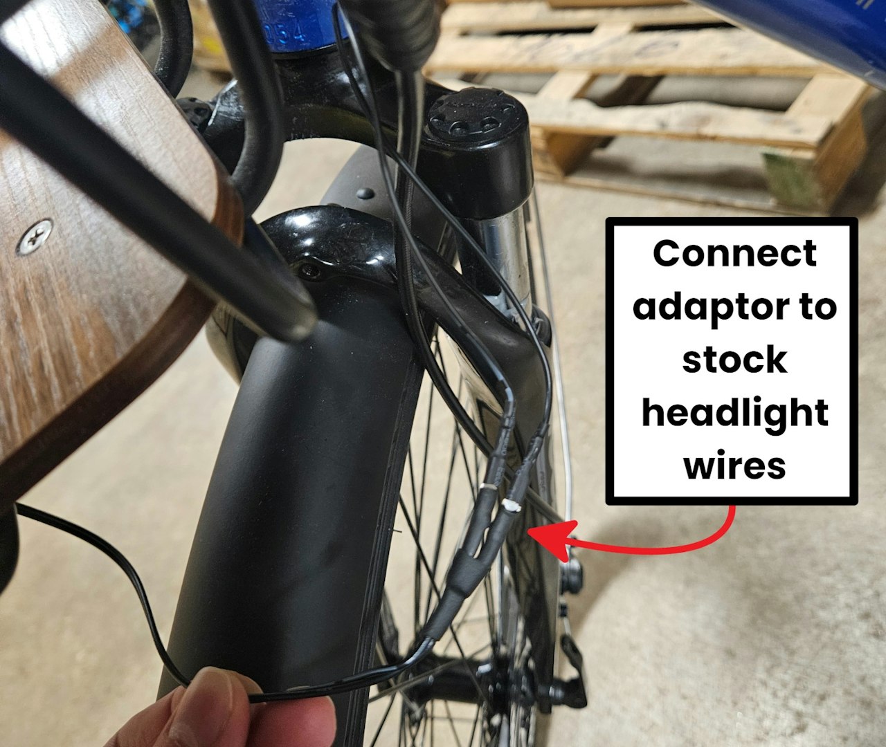 Lastly reconnect the power wires to the headlight. If your headlight power wires are long enough gently pull them out from the frame and reconnect them to your headlight in the same way there were previously connected!