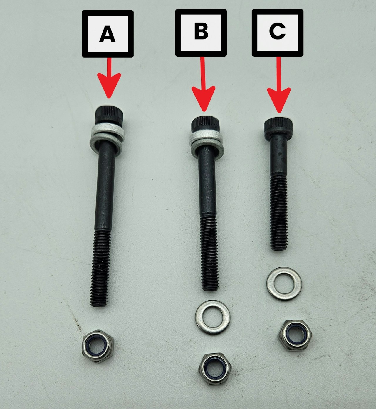 Consult the second and third images here for labels we will use to refer to the hardware and how it will be orientated on the mount.