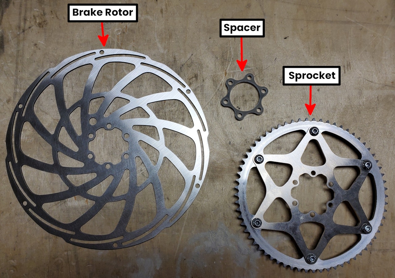 On the Rotor Side of the rear wheel install in the following order - Sprocket, Spacer and Rotor.