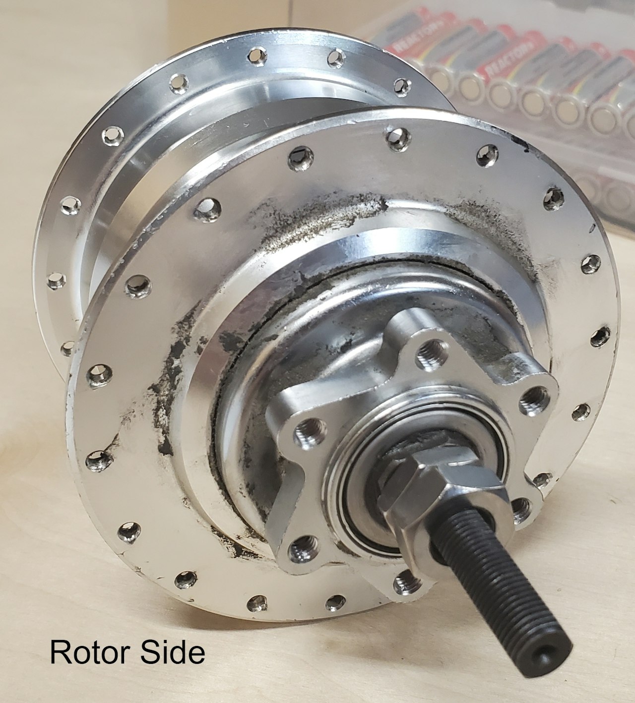 This service can be performed with the hub still laced into the wheel or with the hub standing by itself. However, the rear wheel must be removed from the bike to do this.